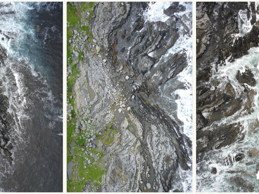 Det er ein overraskande fin og stille junidag ytst mot havet på Søre Sunnmøre. Inne i fjordane står skientusiastane på siste rest av sommarsnø, men her ute, i ei stille vik ved Fosnavåg, er padlesesongen i gang. Men heilt stilt er her ikkje. Lyden av ein hissig motor har dura over hovudet ei god stund no, for ein svær drone flyg systematisk fram og attende langsmed fjøra. Borte i vika står ein fyr med tang og tare til leggen og eit høgt stativ mellom hendene.
